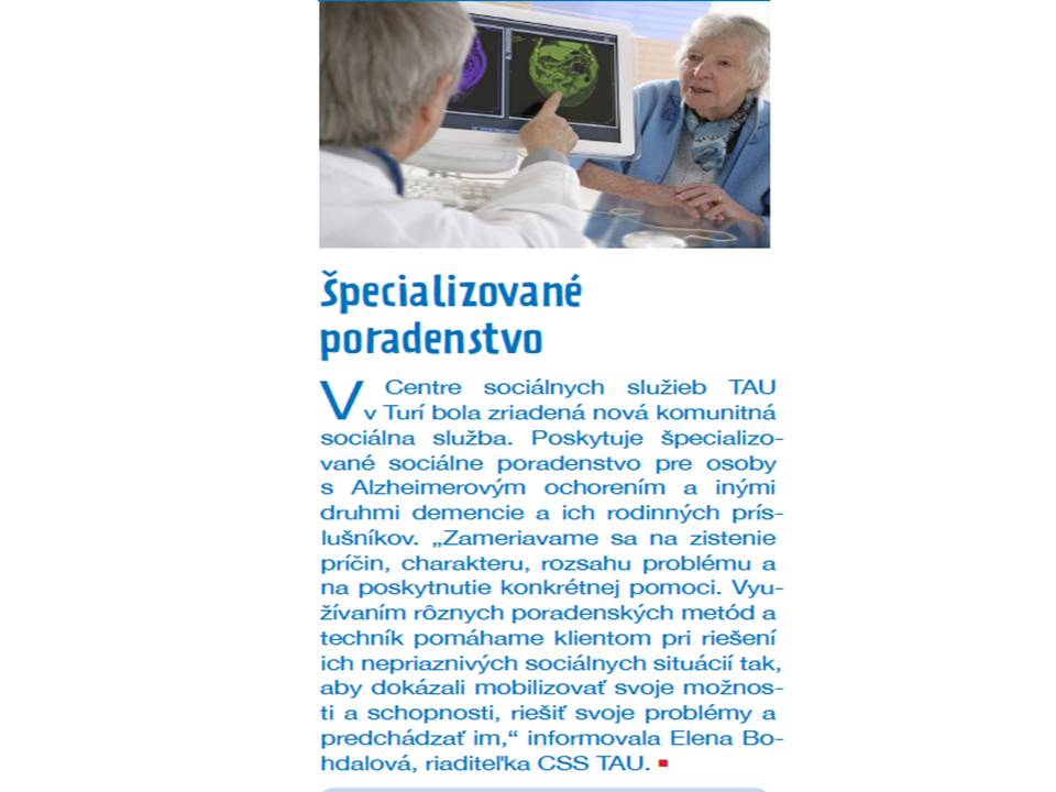 Články v periodiku ZAkraj o Špecializovanom sociálnom poradenstve v CSS TAU a o Týždni dobrovoľníctva, kde sme prostredníctvom finančnej pomoci Nadačného fondu KIA v Nadácii Pontis v areáli zariadenia CSS TAU vytvorili komunitnú záhradu pri kaplnke a pri budovaní záhrady nám pomohli aj dobrovoľníci zo Žilinského samosprávneho kraja.